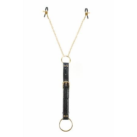Эрекционное кольцо с зажимами на соски "Fetish Gold" металл