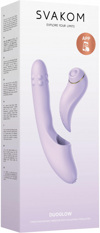 Вибратор-пульсатор + съемный стимулятор клитора "Svakom DuoGlow Neo" с подогревом и приложением, сиреневый